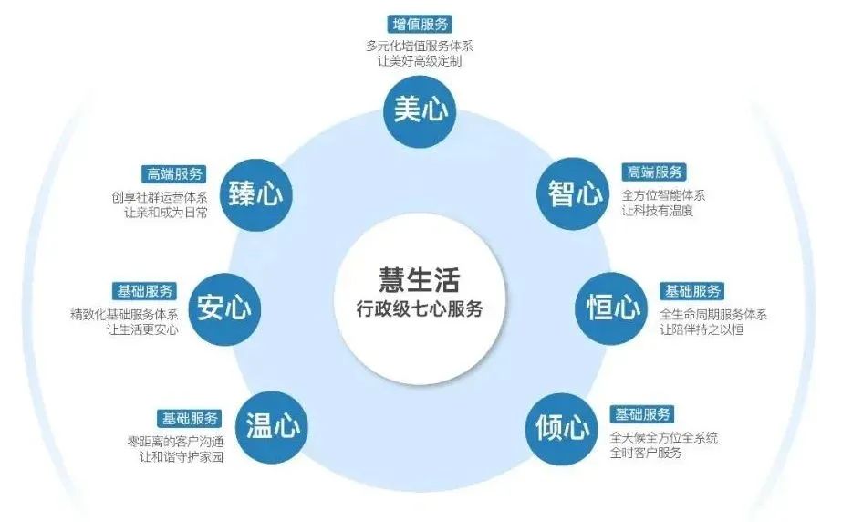 行政級(jí)七心服務(wù)體系,予社區(qū)科技的慧善服務(wù),力創(chuàng)科技賦能的美好共生體;予品質(zhì)細(xì)節(jié)的長情服務(wù),提高全生命周期的精細(xì)化體驗(yàn);予人文關(guān)懷的至誠服務(wù),創(chuàng)享友善智樂的社區(qū)幸福感;予真摯情感的關(guān)懷服務(wù),定制家人式陪伴的親和感日常。